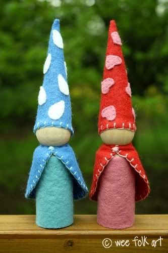 Called "Large Gnomes for Little Hands", these gnomes are made especially for babies using wool felt, a large wooden peg, and stuffing material. How great would this be for your little ones?