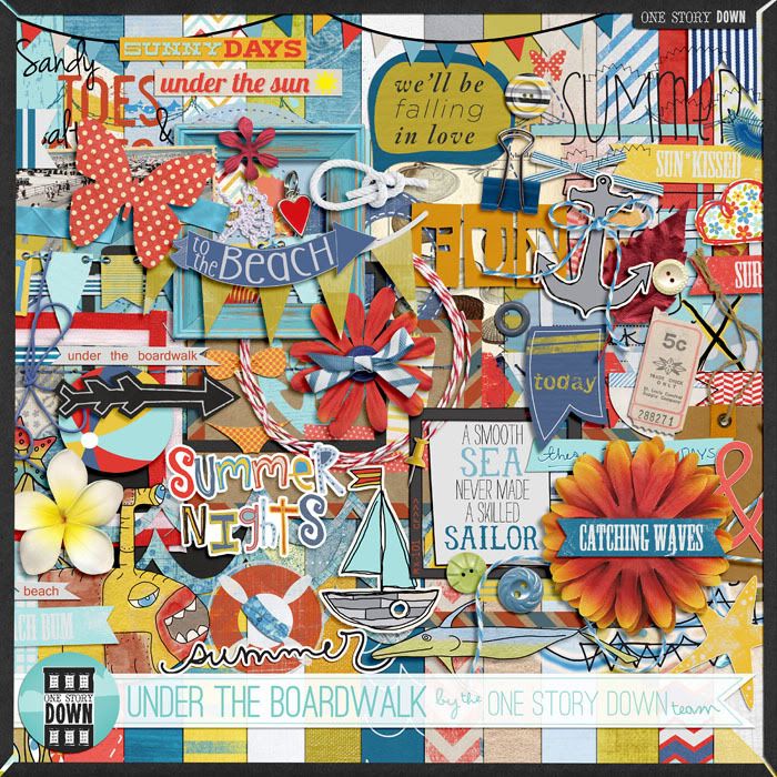 And One Story Down is giving everyone a FREE digital kit called "Under the Boardwalk"! It's a really cute summer-themed kit and features so many fun papers and embellishments.