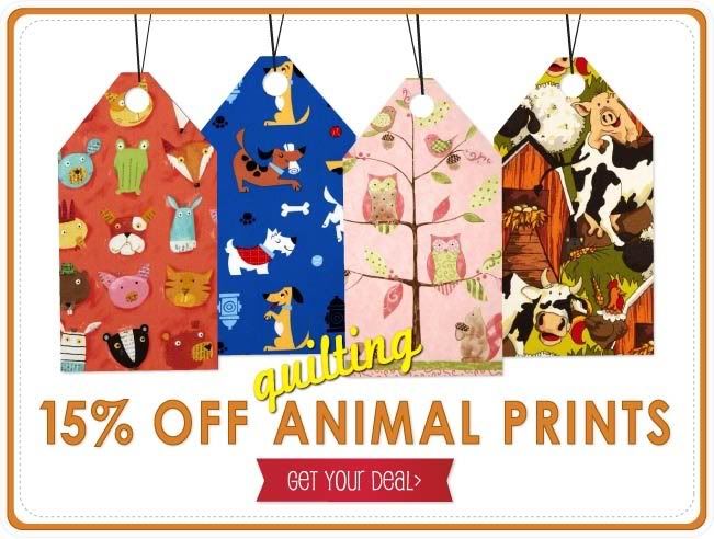 Today's deal from Fabric.com is 15% off all animal print cotton fabrics (including Hello Kitty... Craft Mom Lorrie's personal favorite!).