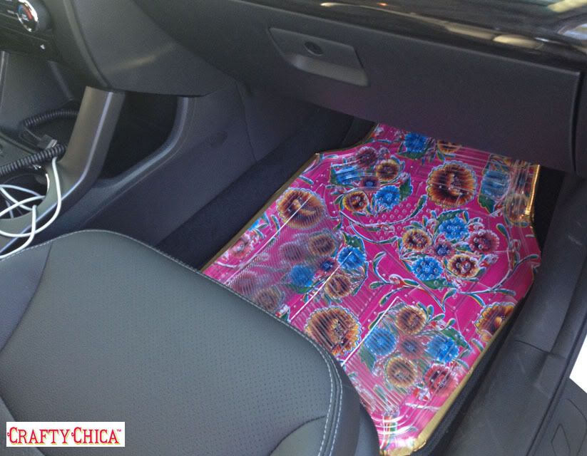 is at it again... she has made a project that I simply MUST try! These are DIY floor mats for your car using clear vinyl floor mats and oilcloth fabric.