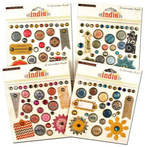 includes 4 sets of brads from the Indie Chic line. The 4 sets are